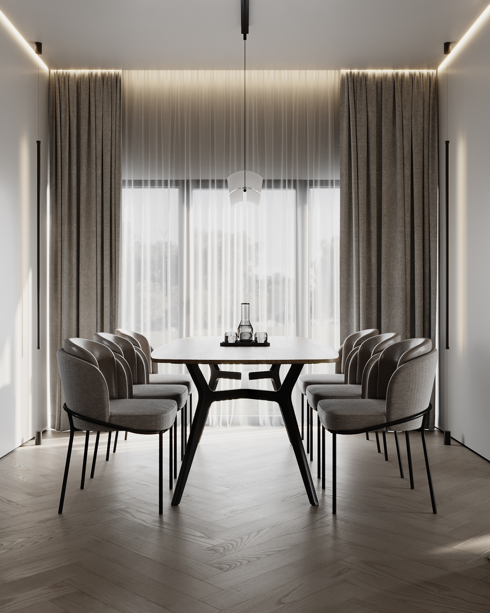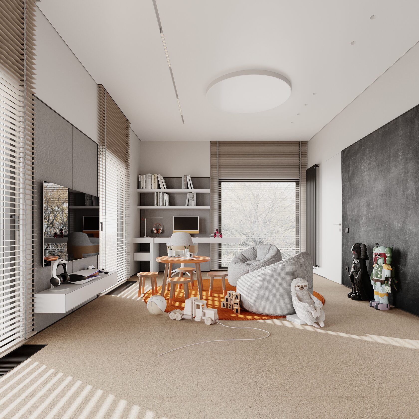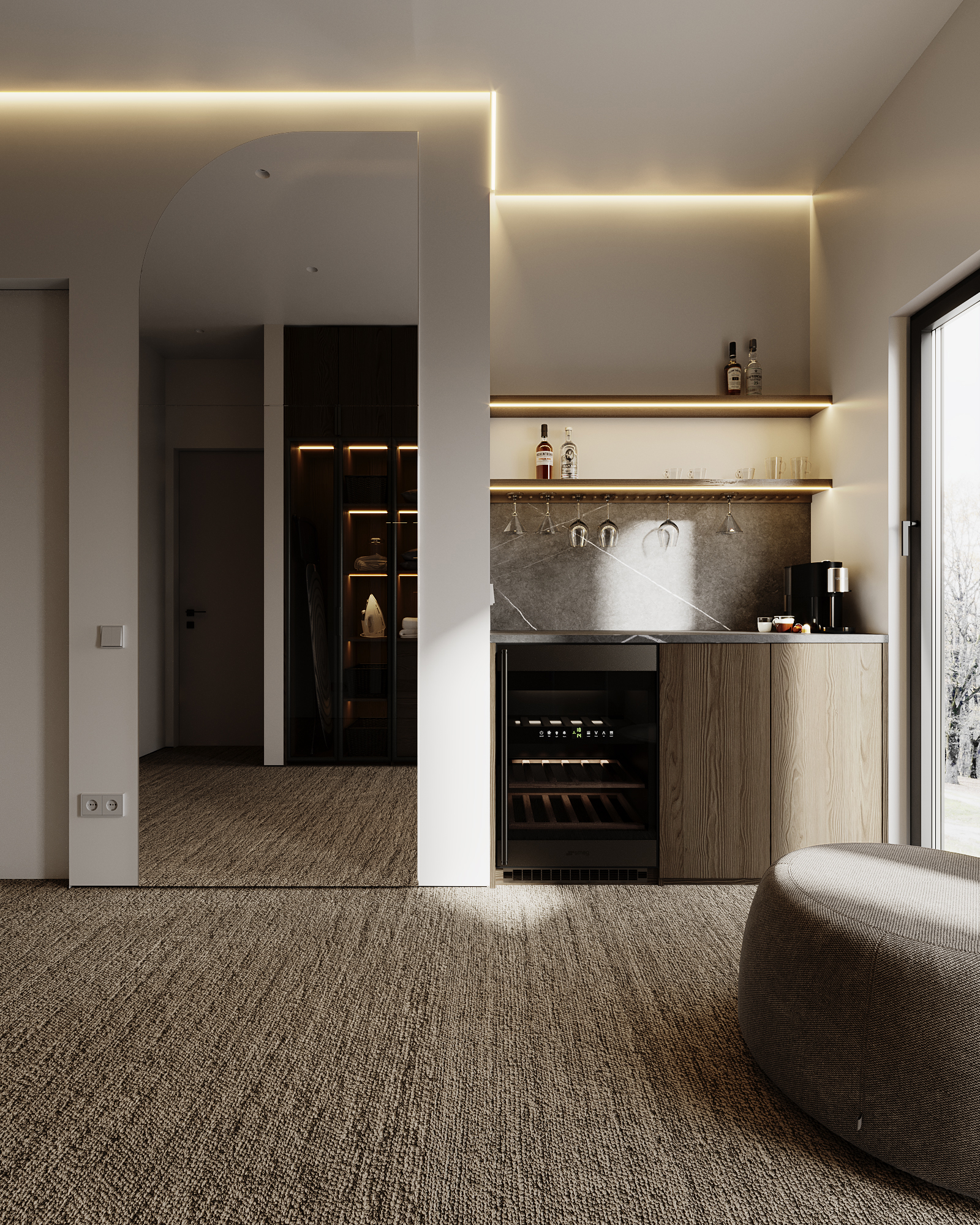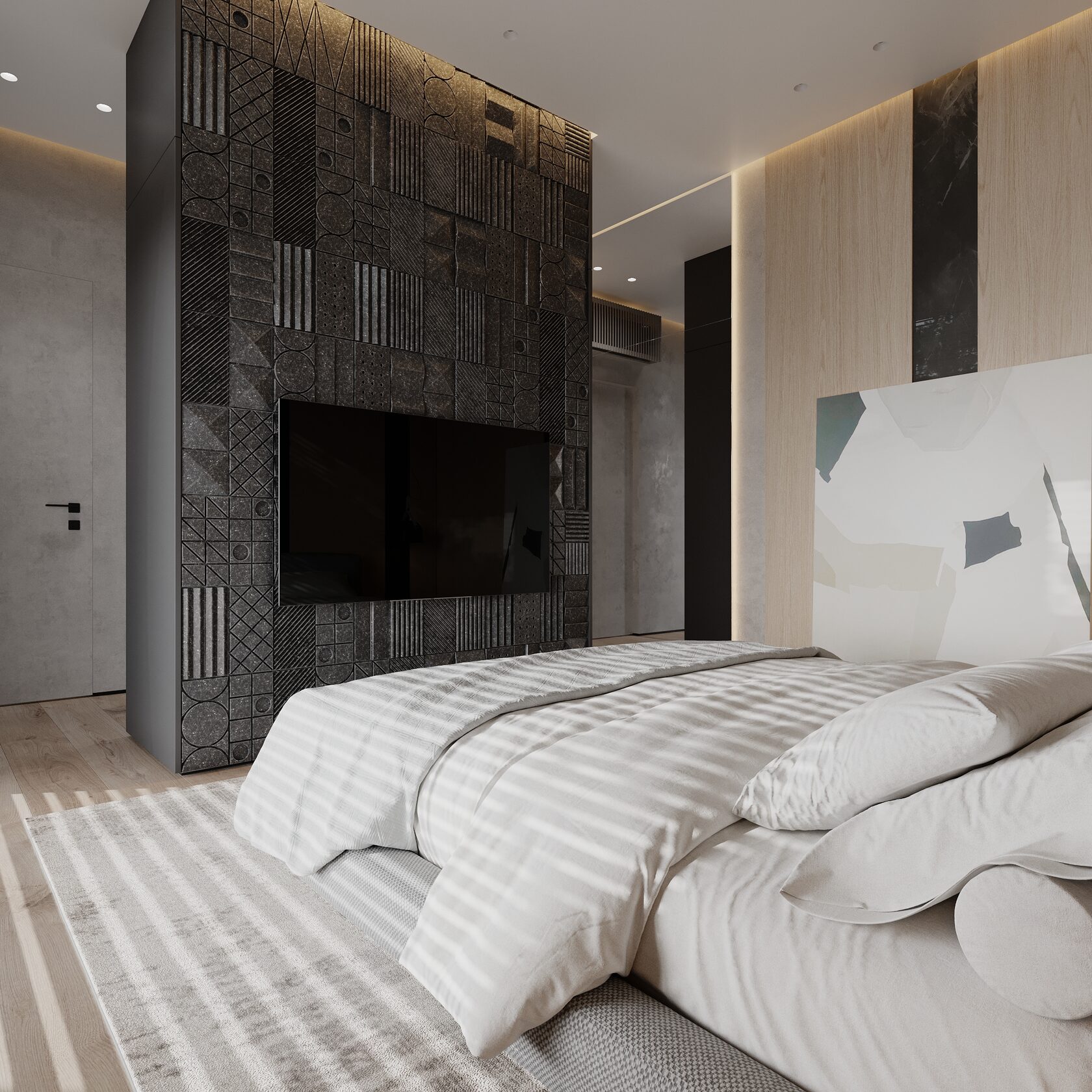 At the core of the project is a custom-built media wall, integrated into a larger architectural composition that defines the main living space. The goal was to create a home that feels open, refined, and intentionally designed, where every detail contributes to a cohesive visual experience.