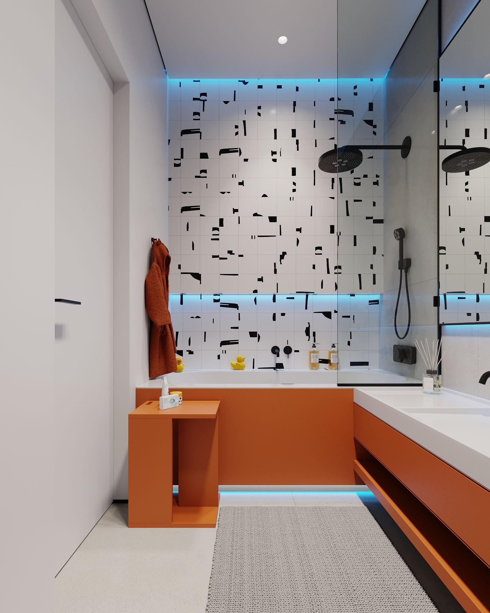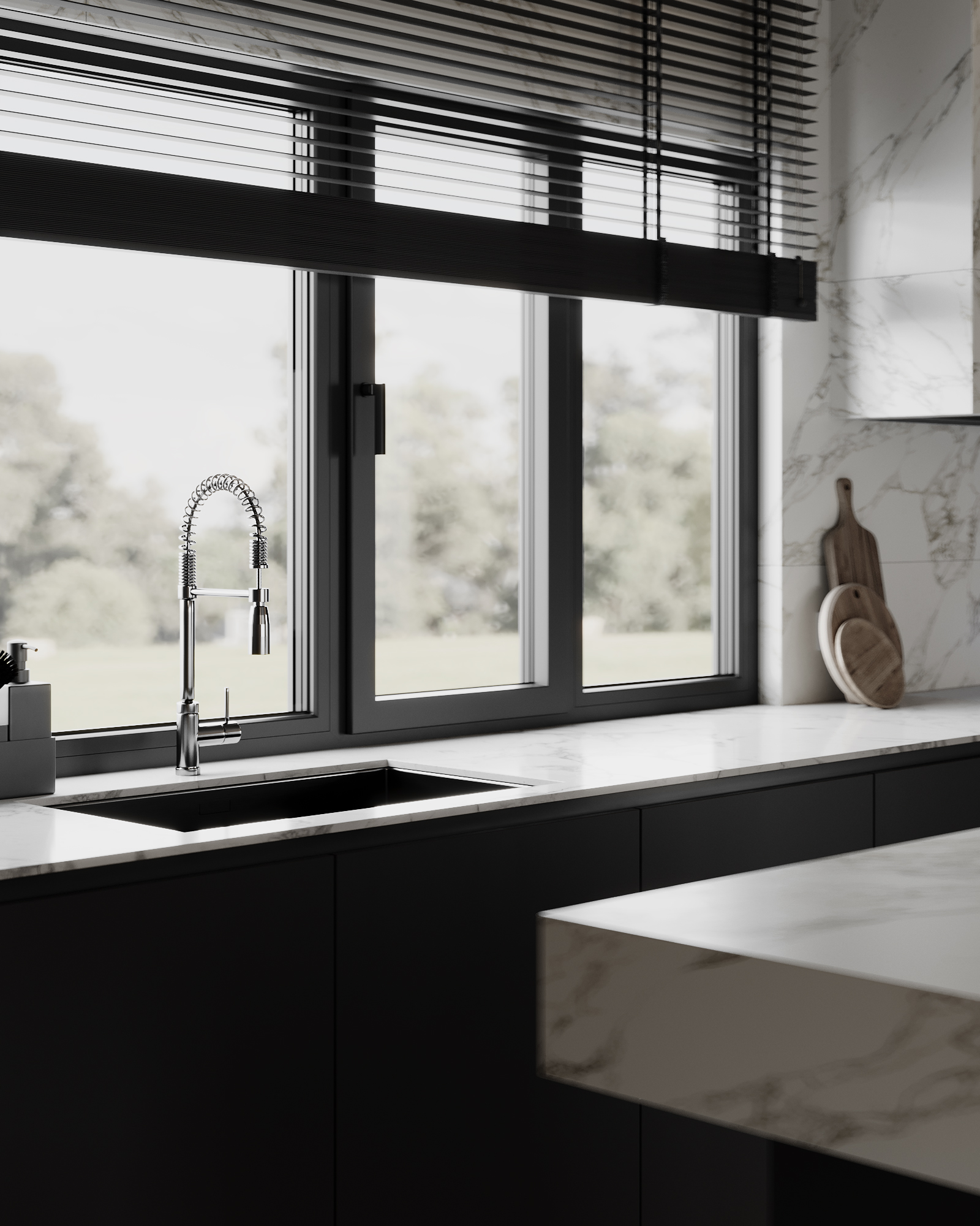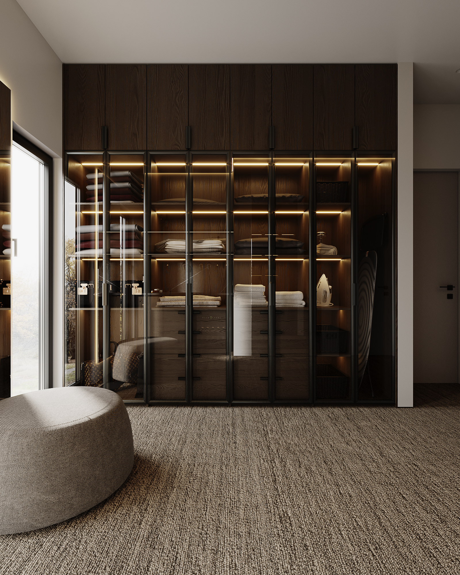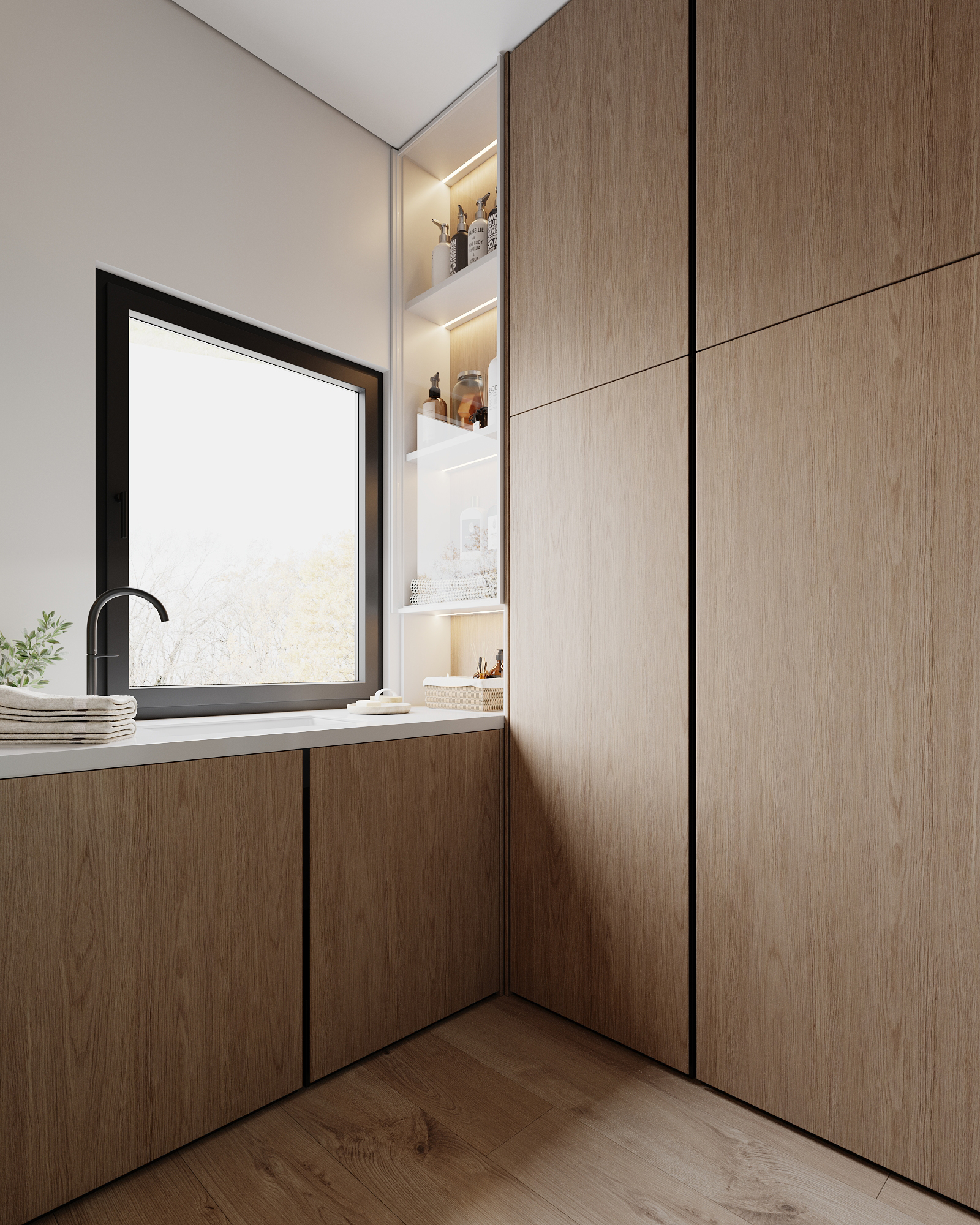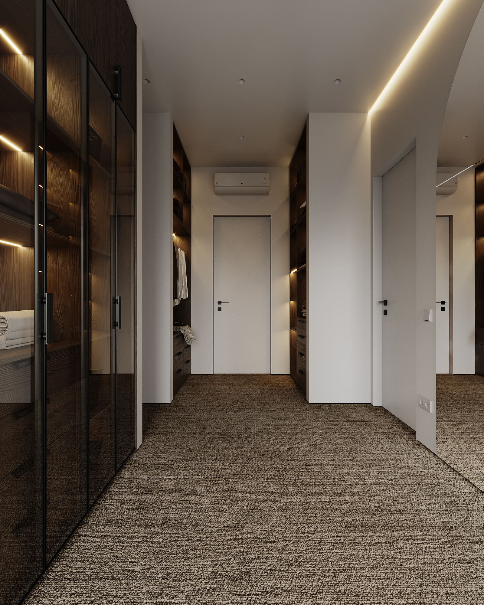 At the core of the project is a custom-built media wall, integrated into a larger architectural composition that defines the main living space. The goal was to create a home that feels open, refined, and intentionally designed, where every detail contributes to a cohesive visual experience.