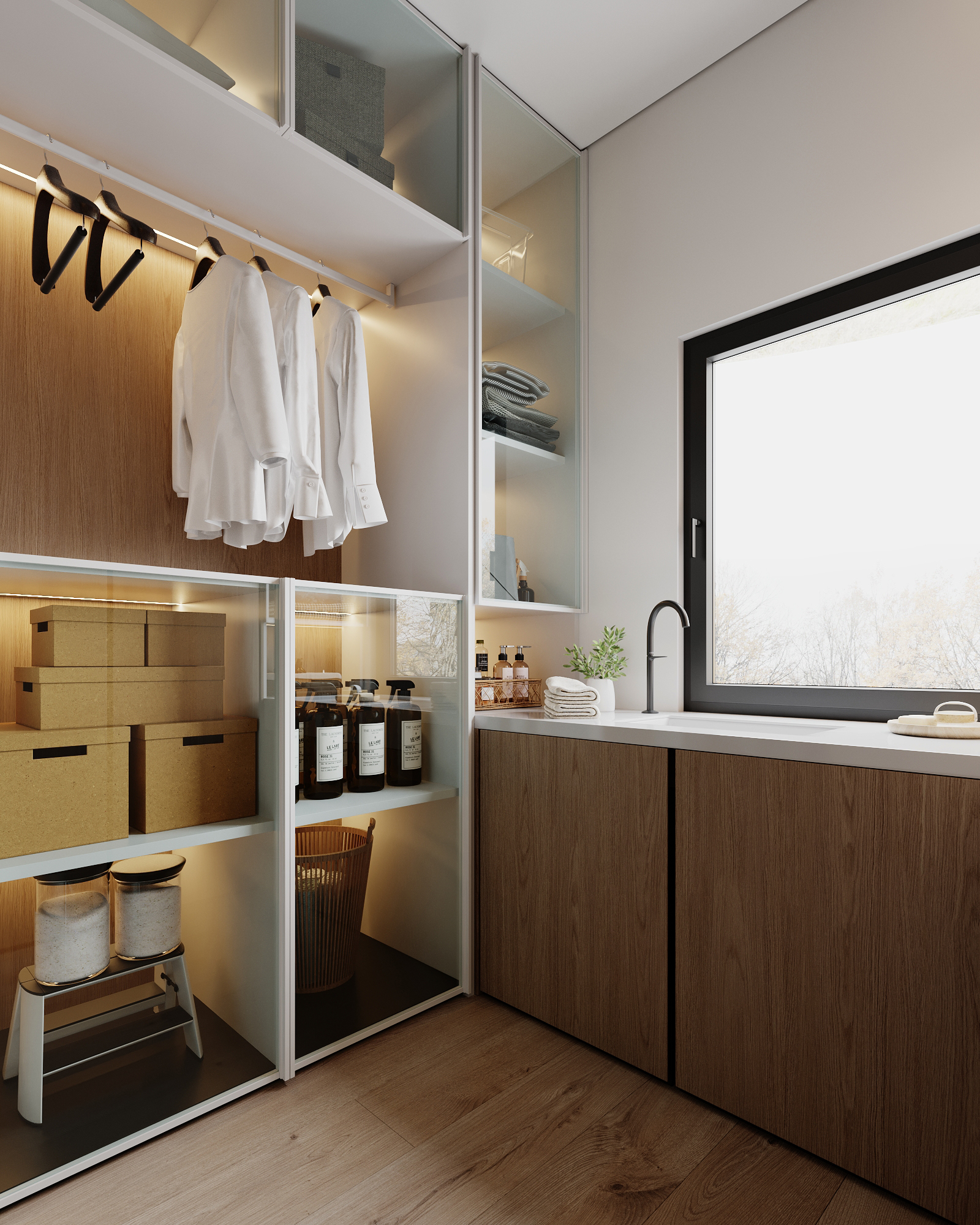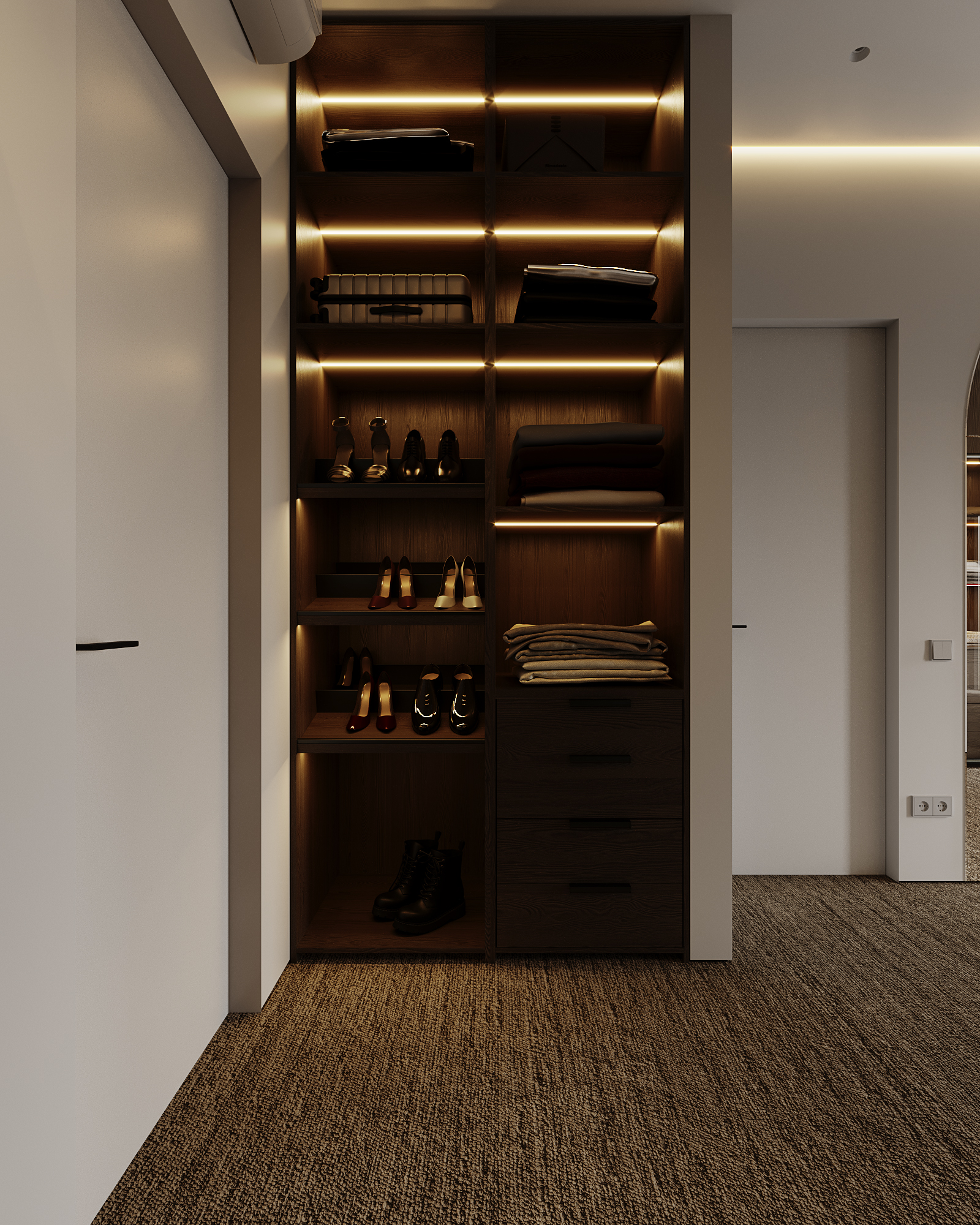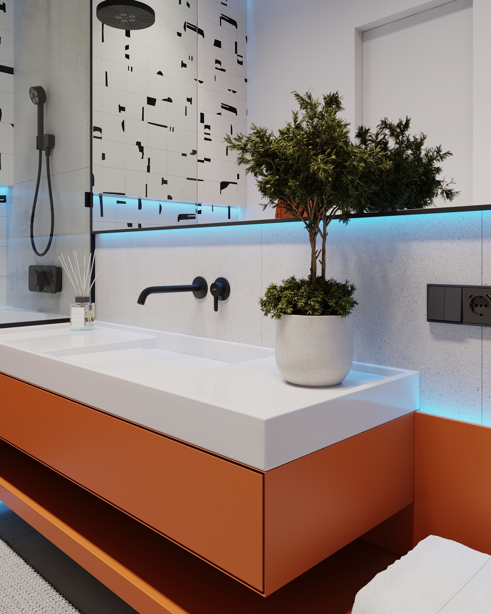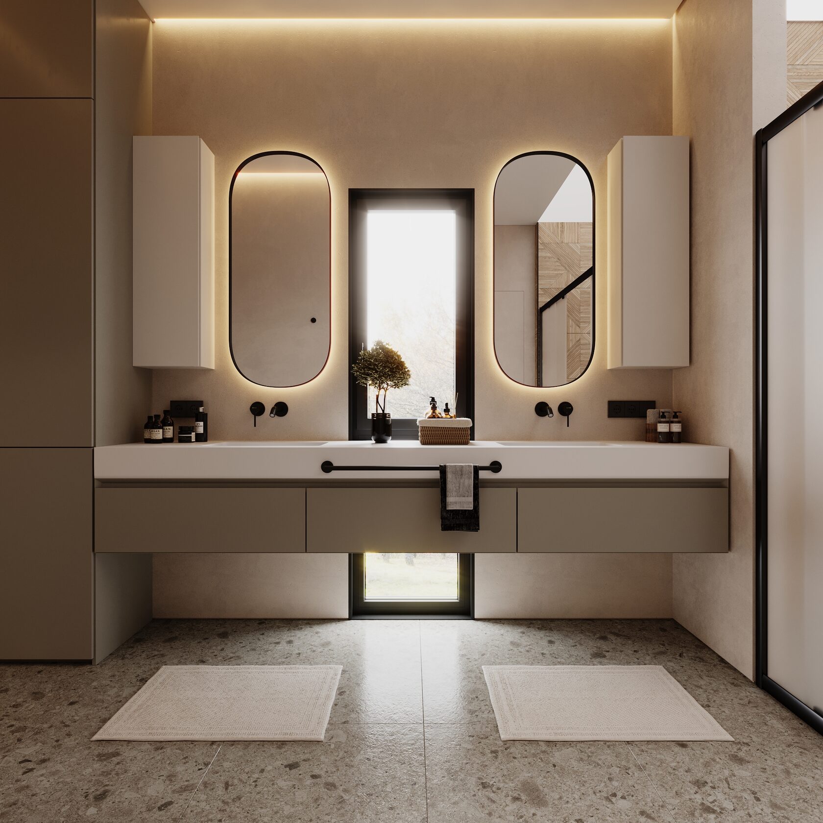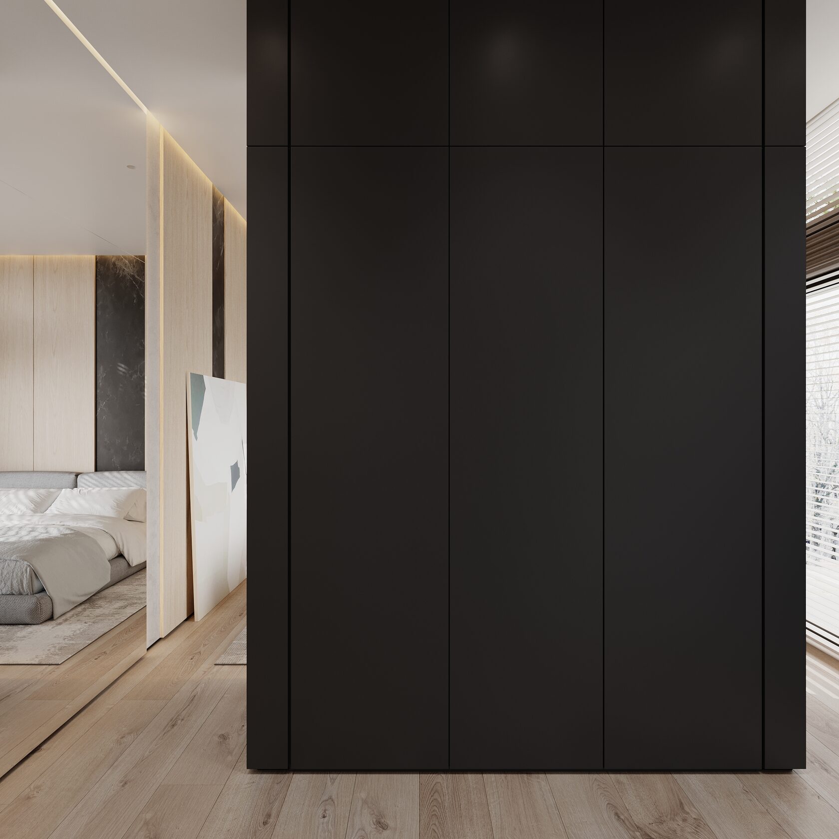 At the core of the project is a custom-built media wall, integrated into a larger architectural composition that defines the main living space. The goal was to create a home that feels open, refined, and intentionally designed, where every detail contributes to a cohesive visual experience.