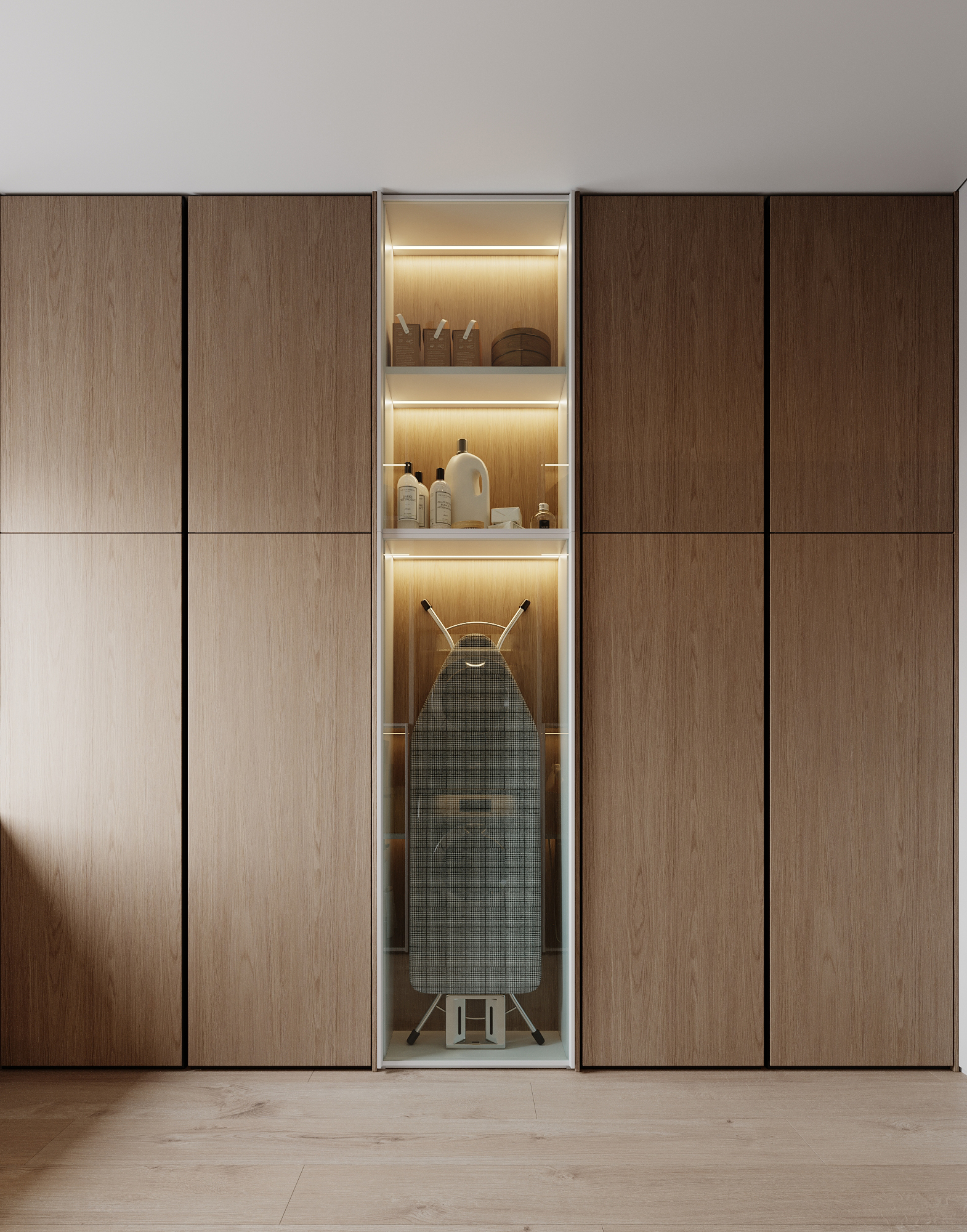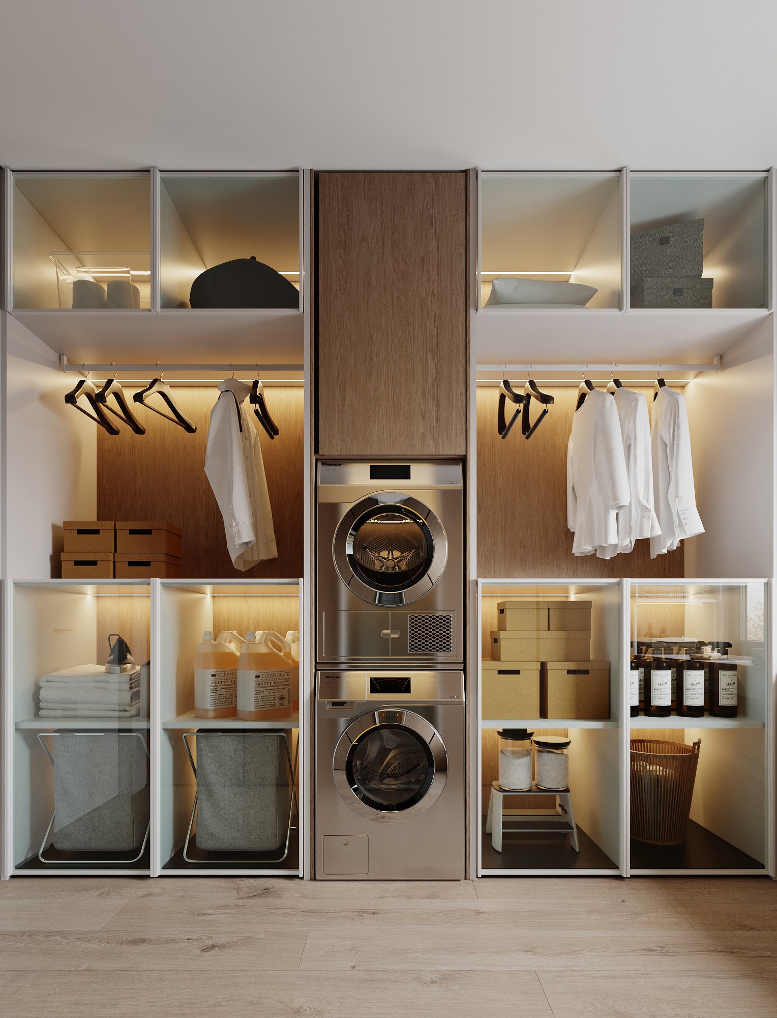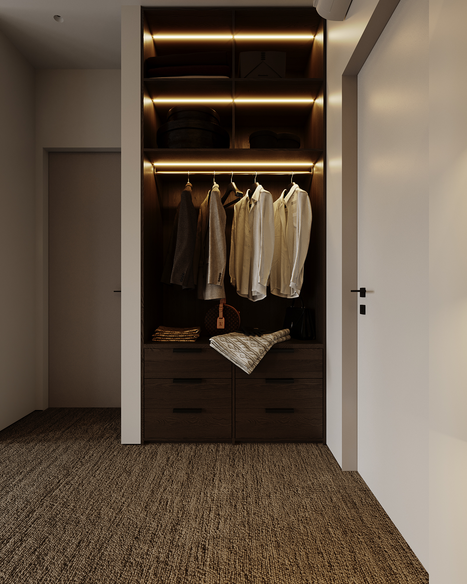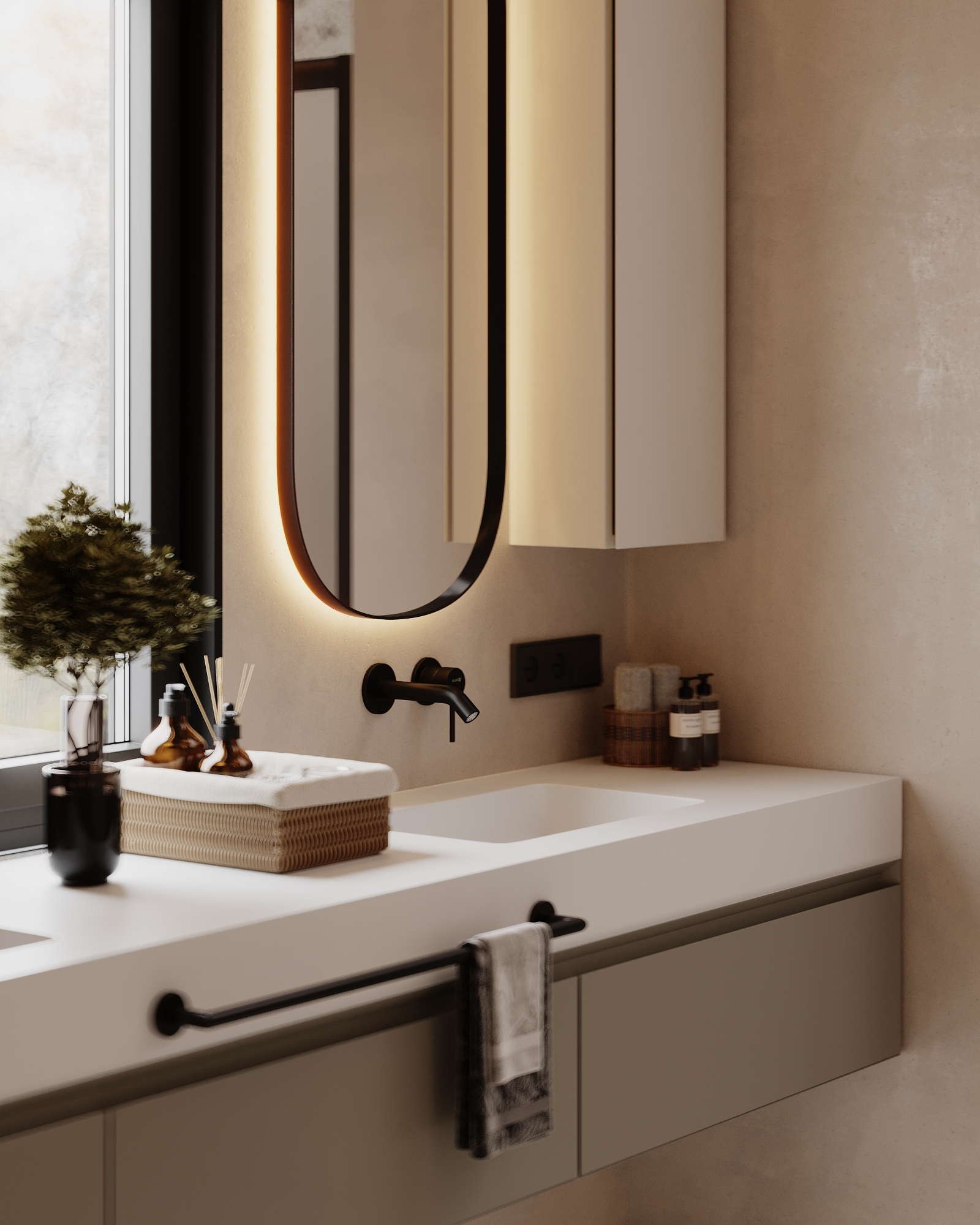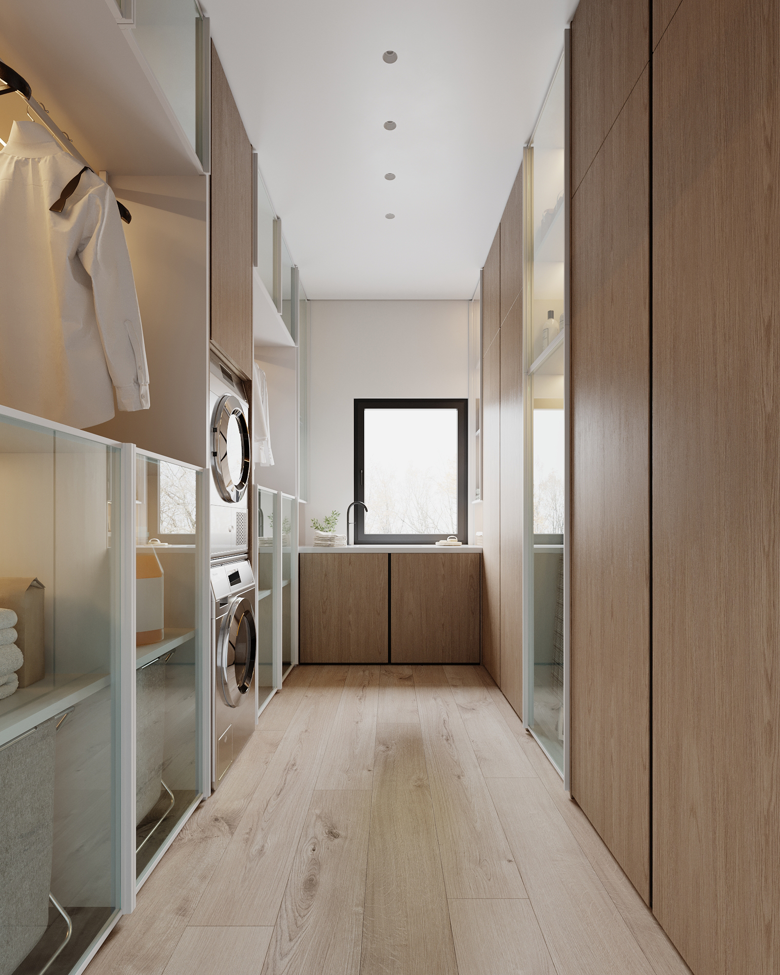 At the core of the project is a custom-built media wall, integrated into a larger architectural composition that defines the main living space. The goal was to create a home that feels open, refined, and intentionally designed, where every detail contributes to a cohesive visual experience.