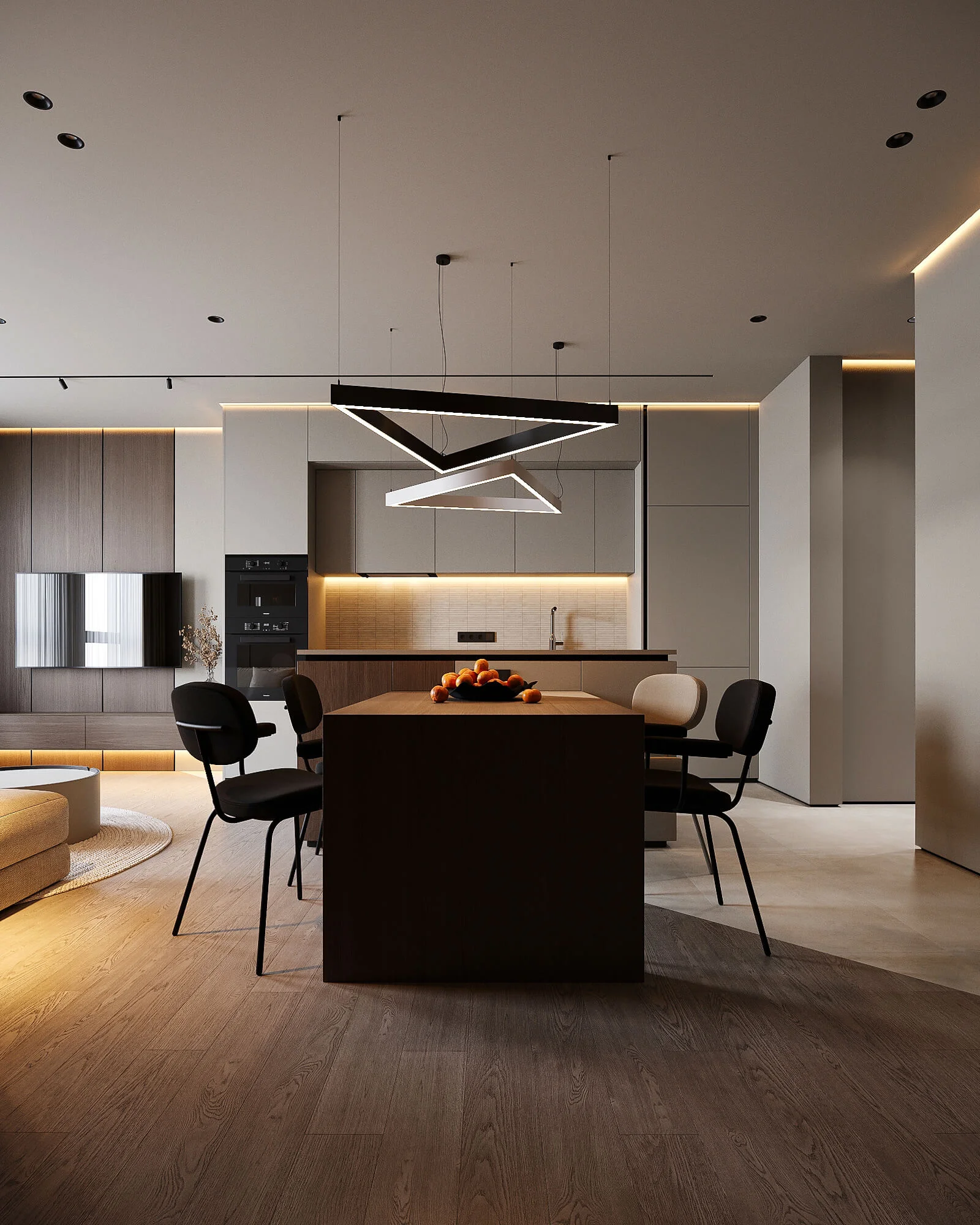 This West Loop residence was reimagined through a full-scale remodel, with a strong focus on integrating custom media walls and architectural accent features throughout the home.